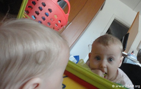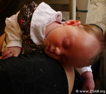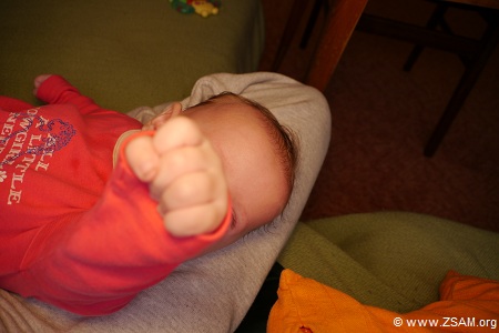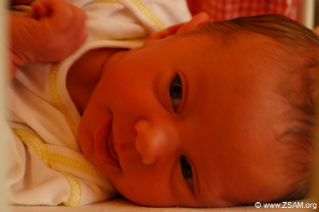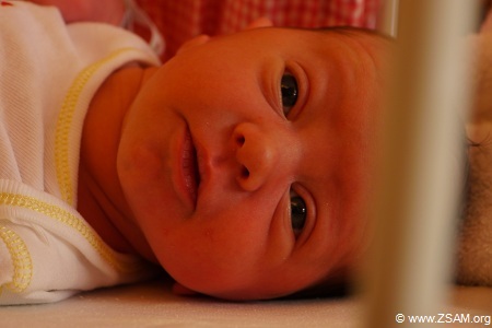 Baby-Nest. The best drugs are: Love and a baby, that is looking and smiling with its big eyes into yours. Grub eats laughing baby! Child offers soother to chancellor!